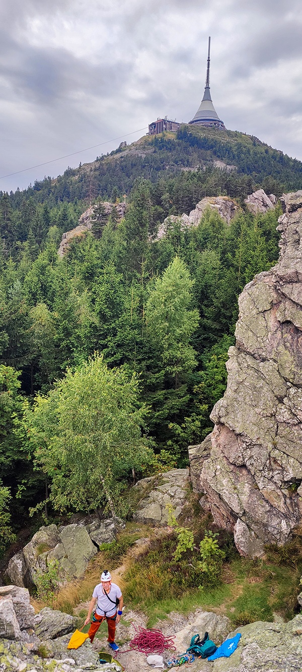 Bei einem kurzen Abstecher ins Jeschkengebirge im Mai 2019 hatte Almuth zum nicht allzu weit entfernten Fernsehturm hinübergesehen und gemeint, dass es schön wäre, mal im dortigen Hotel zu übernachten und in diesem Gestein, Quarzit, intensiver zu klettern.