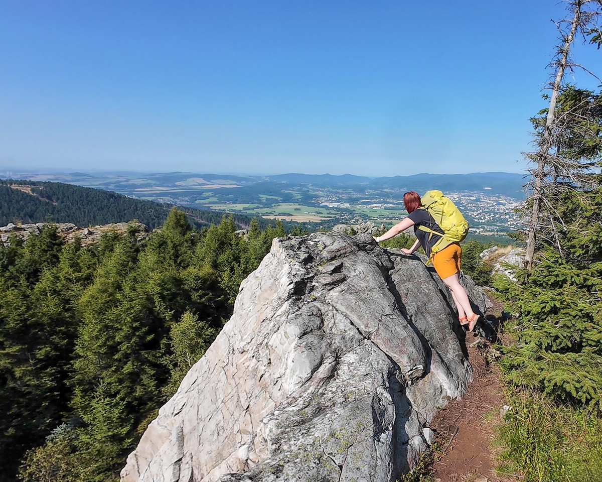 Also war es morgens locker abwärts zu den Wirbelsteinen, Vířivé kameny, gegangen, hier sollten die Gipfel von 2019 nochmals und dann einige andere und auch andere Touren be- und durchstiegen werden.