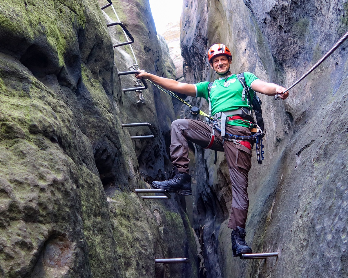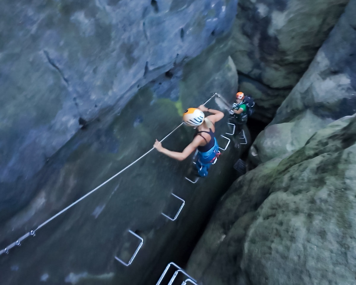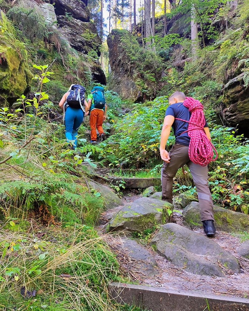 Für das Debüt im Elbsandsteingebirge folgte nun auch gleich einer der Höhepunkte des Gebietes: die Häntzschelstiege.